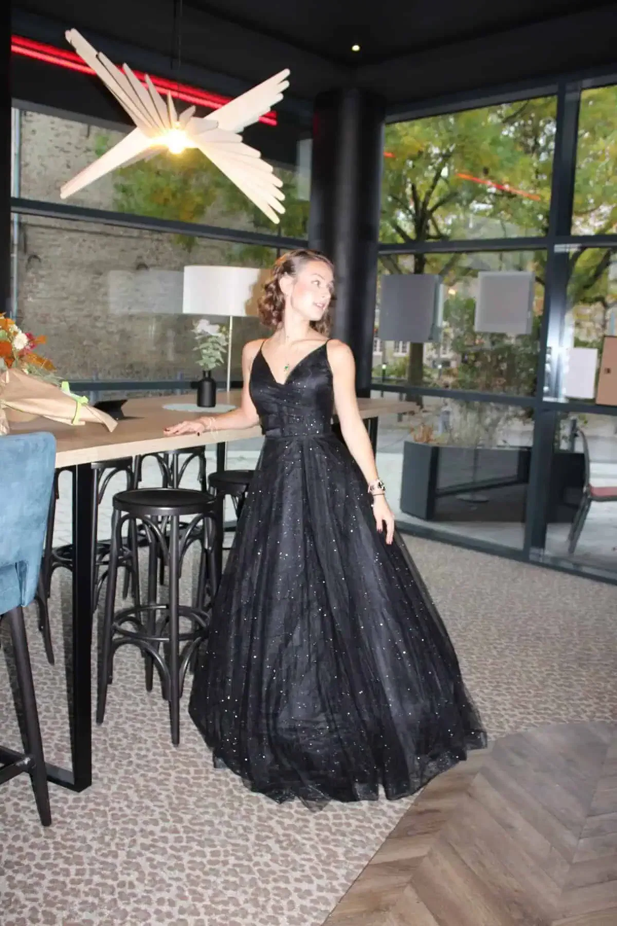 Cette robe évoque une allure féerique et élégante, parfaite pour des événements formels comme un mariage, un bal ou une soirée de gala.